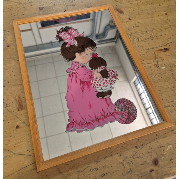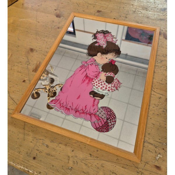 Specchio stampato raffigurante una delle immagini della famosa illustratrice australiana Sarah Kay. Cornice classica in legno. In perfetto stato.