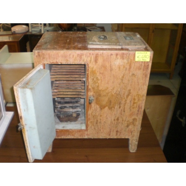 Vecchia ghiacciaia, anni '40. Sportello singolo e incassi superiori per riporre il ghiaccio. In buono stato strutturale, necessita soltanto di un eventuale restauro estetico.