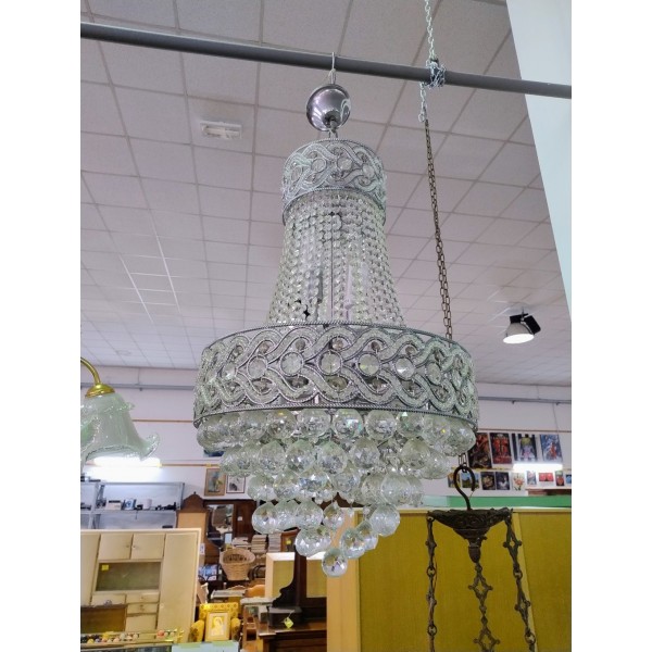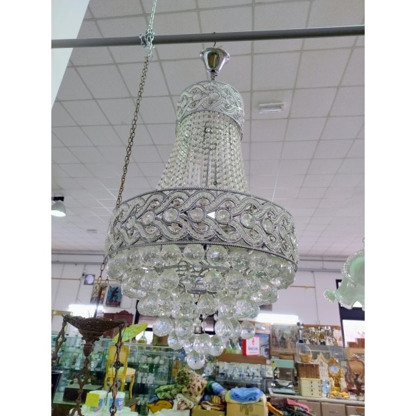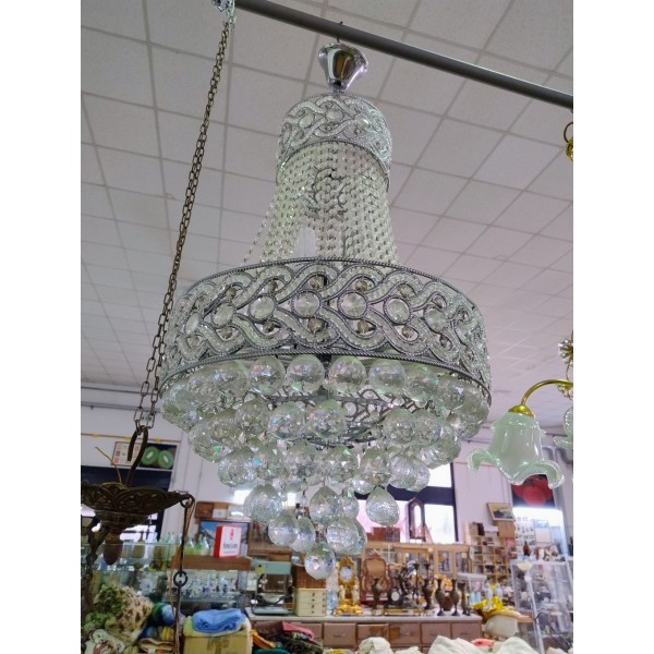 Vendiamo bellissimo lampadario a sospensione con cristalli e sfere di vetro. In foto si vedono delle sfere mancanti che sono però in nostro possesso.