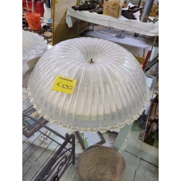 Plafoniera in vetro di Murano in perfette condizioni, piccola calotta finale mancante.